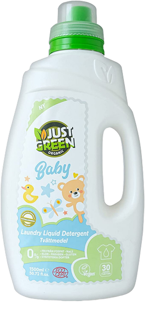Экологичный гель Just Green Organic - жидкое средство для стирки детского белья и одежды, обладает высокой эффективностью и экологически безопасно. Сертифицировано ECOCERT.
