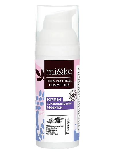 Заживляющий крем Лаванда от ожогов, ссадин, бытовых травм, раздражений, укусов насекомых, mi&ko